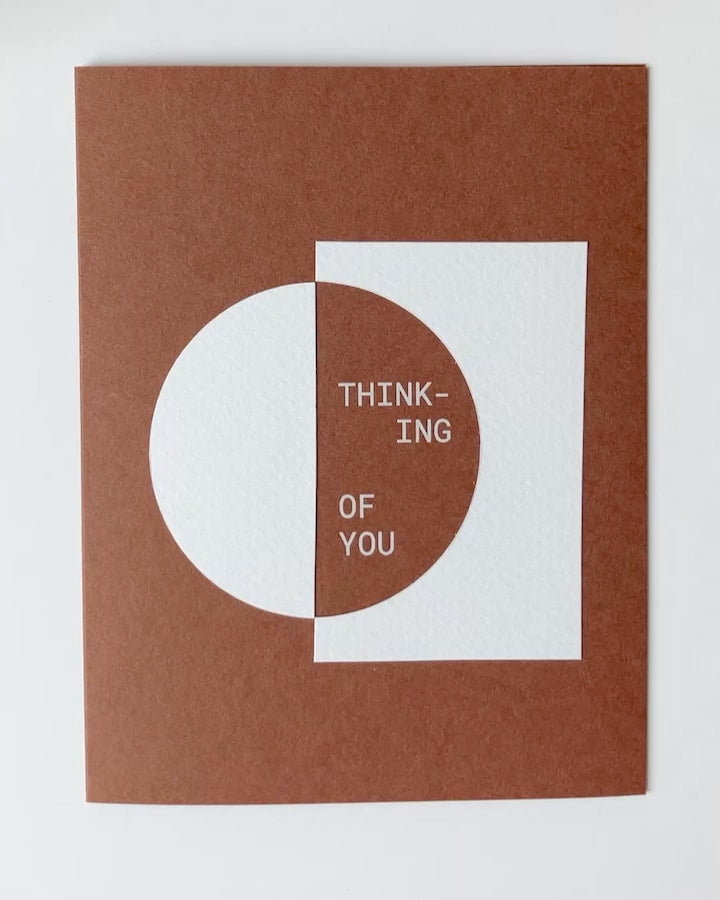 Part of my Soft Geometry series, this modern friendship card features a poetic arrangement of hand-cut paper shapes and crisp white ink lettering on rich sepia Gmund cardstock. Each card is assembled by hand in my Denver, CO studio, making it truly one-of-a-kind. Dimensional cutouts on premium paper stock create a beautifully tactile experience. A fresh take on the friendship card — design-forward and quietly bold.